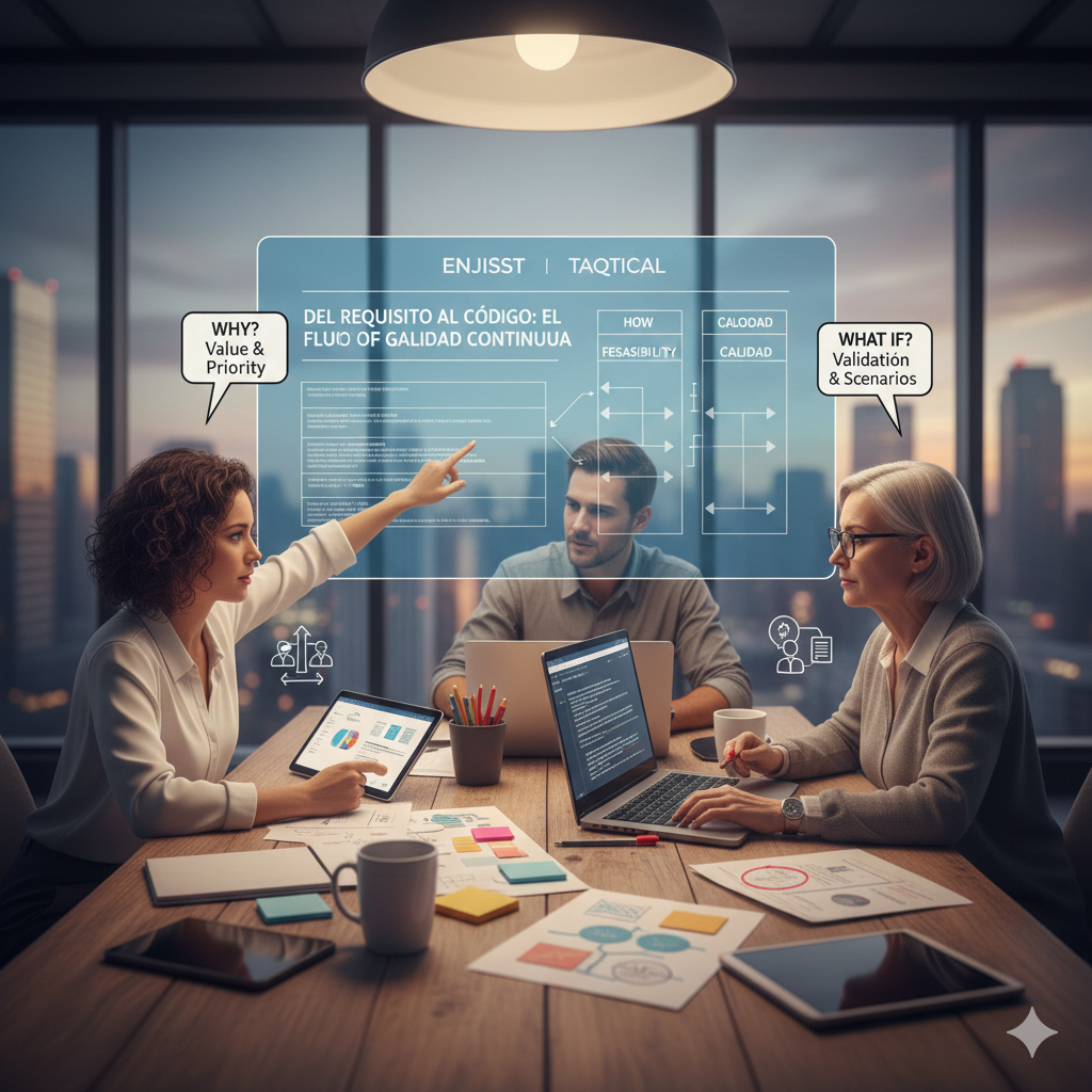 Es el puente invisible que une visión, código y validación: calidad que se diseña en equipo, no que se revisa al final.
